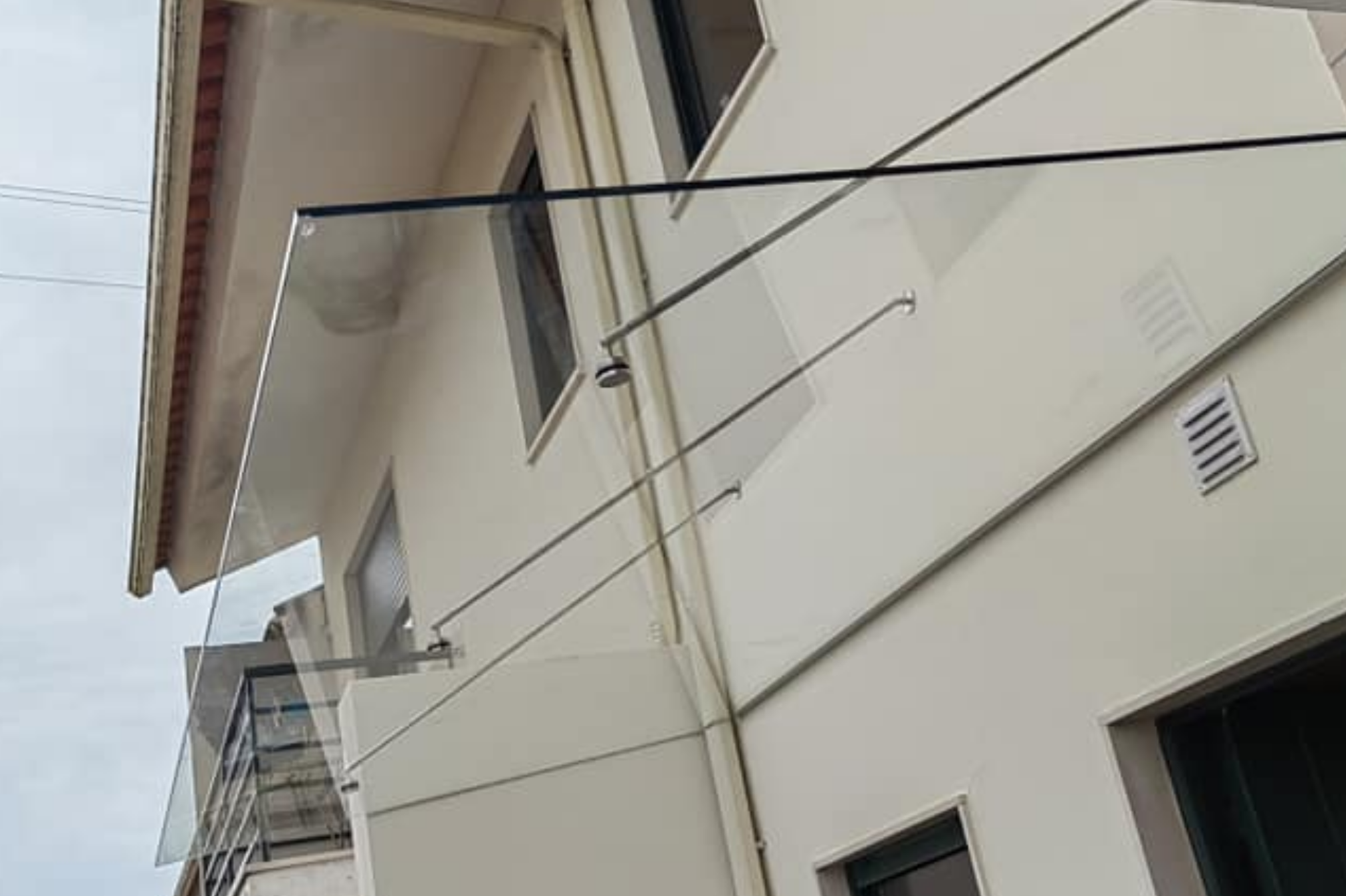 Pala em vidro temperado 10mm incolor com tirantes inox.
